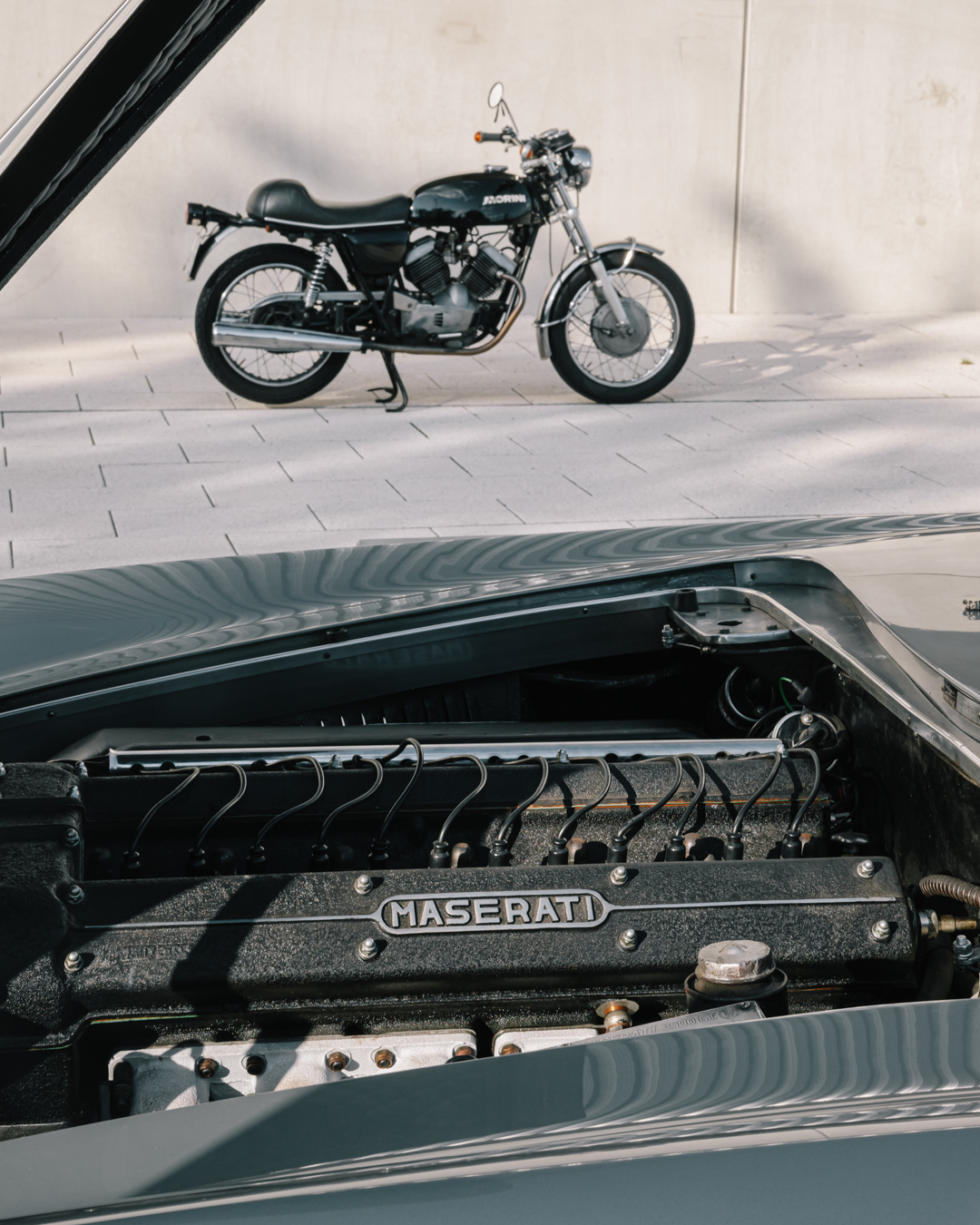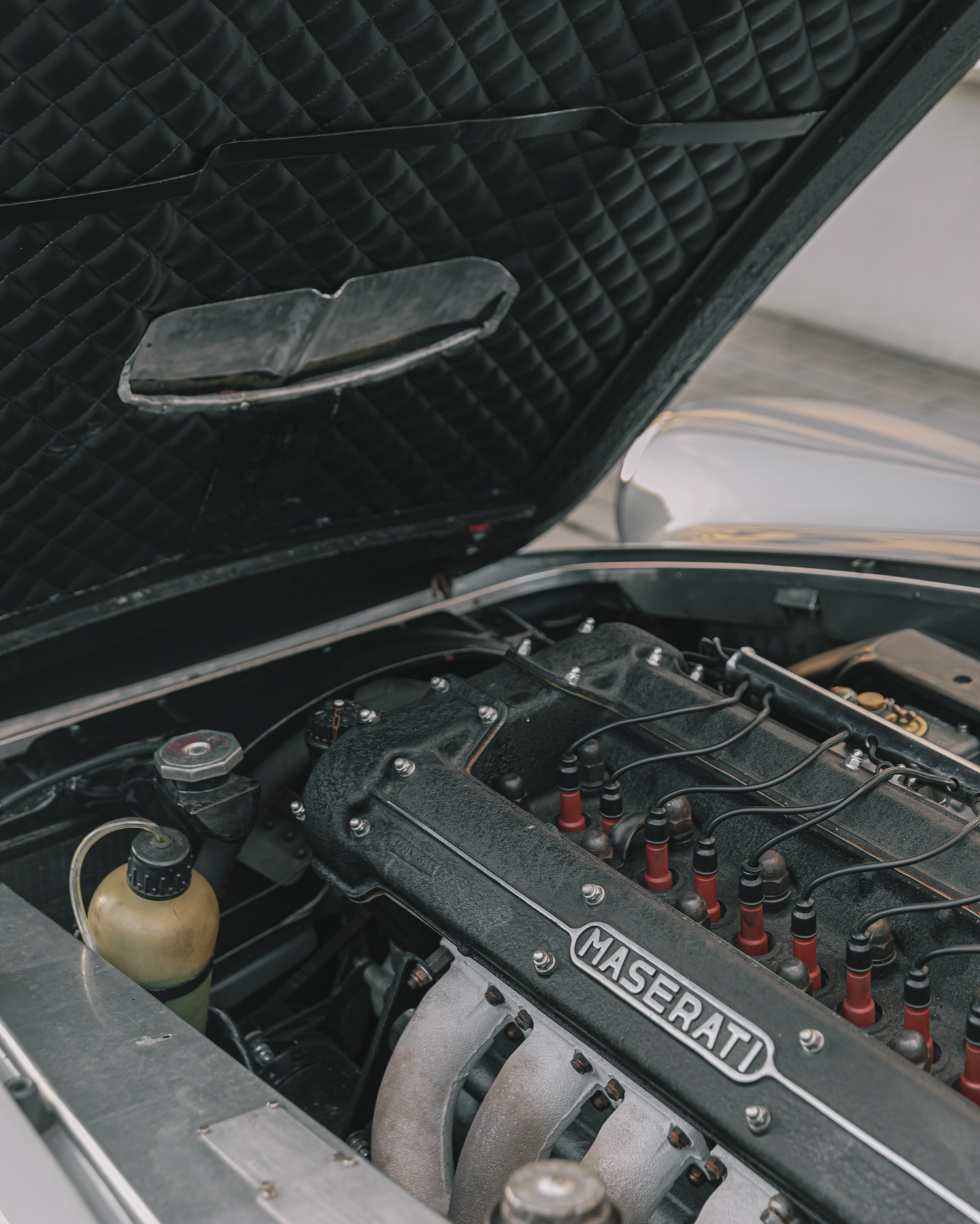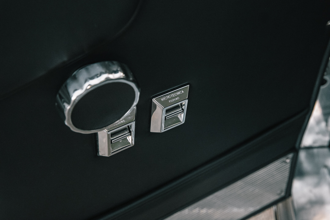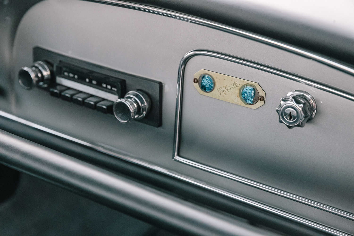 On the passenger side of the dashboard, there is a small metal plate with a blue round stone-like shape and the name Gabriella engraved on it. Gabriella was Alfonso Morini’s daughter and presumably as a lucky charm or a reminder of her, he installed this little plate on the dashboard. Interestingly it was his daughter Gabriella, who ran Moto Morini after her father Alfonso passed away in 1969. She managed the company for almost 20 years until it was sold. It is unclear but likely that Gabriella owned this Maserati after the death of her father before she sold it.