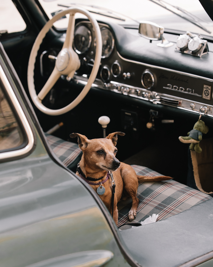 On Saturday very early in the morning, I had the chance to have a talk with the owner of the famous green 300SL Gullwing with an original engine- never restored and with only two owners in its history, it was fascinating to hear a lot of racing stories and experiences with this car. In his company were his wife and the funniest dog, naturally posing for every single shot. (Lucky dog)