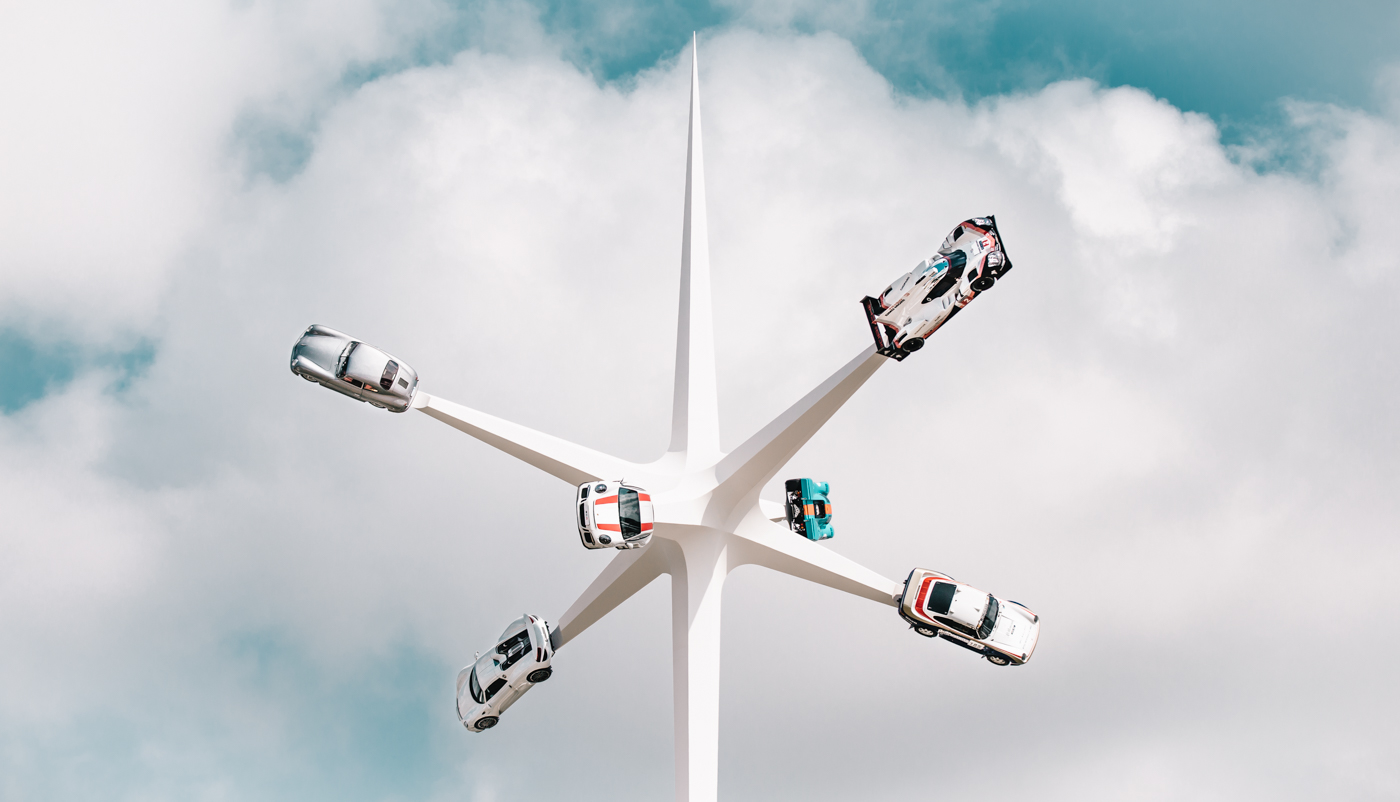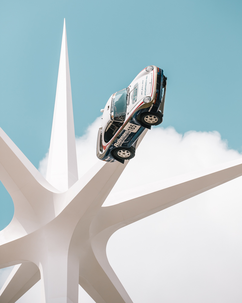 One of my favorites highlights was the so-called “Central Feature” in front of Goodwood House done by the British artist and designer Gerry Judah. It is a sculpture in tribute to the main topic of the event of each year. In this year’s edition, six Porsches were attached to a 52 meter-high star-shaped white structure. It was created to mark the 70th anniversary of the first Porsche production using the most important cars in Porsche’s life, including the 911, the 959 Dakar, and of course the original 356.