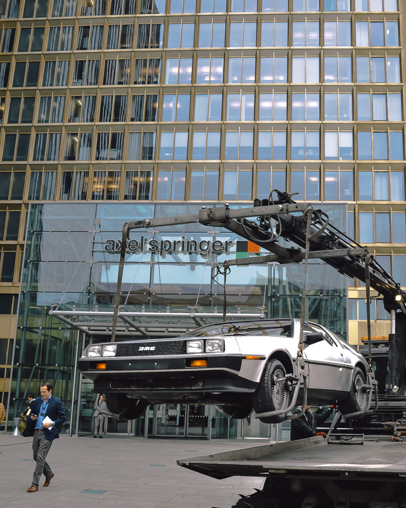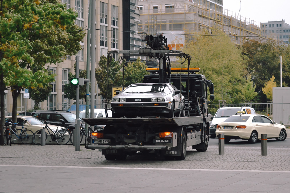 I spent the first days of October 2015 exploring Berlin for the first time. I was biking in Mitte, on Axel-Springer-Straße, and all of a sudden a voice in my head urges me to look up to my right and at that moment I see a very beautiful 1981 DMC-12 DeLorean standing right in the middle of the park of the Axel-Springer building. What a coincidence to see one of my favorite cars there, waiting for me to photograph it and of course admire this piece of history that I’m sure we all know.