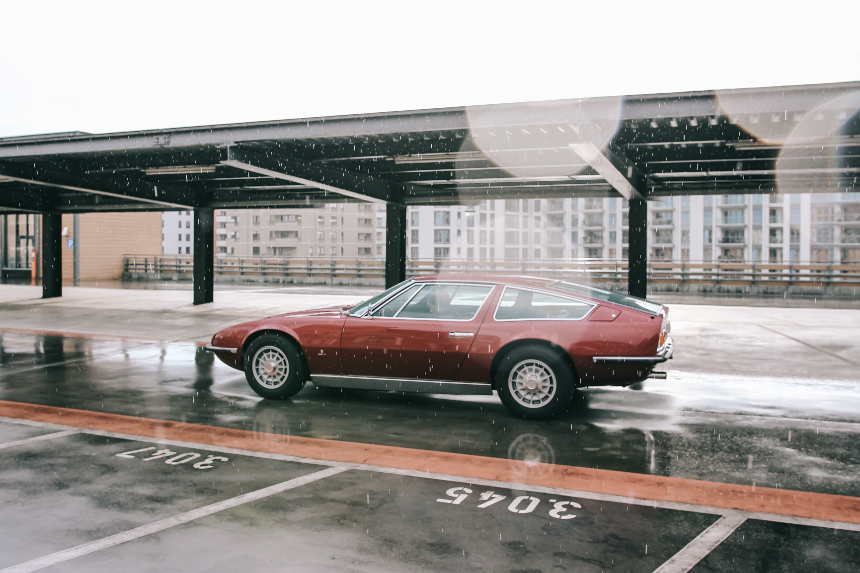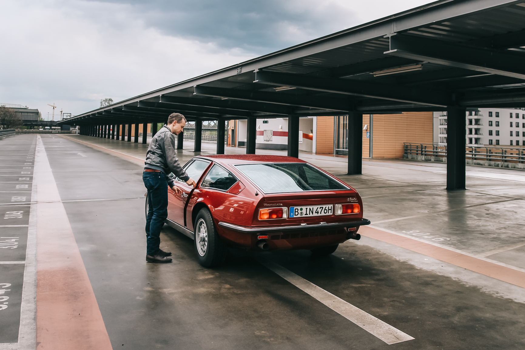 Spring/Summer in Berlin could have a very special weather. One of those special days, Dirk invited me to meet and go on a ride in his FANTASTIC 1971 Gran Turismo Maserati Indy America 4.7. Dirk was one of the first Carphiles that I met in Berlin, thanks to the world of Instagram. In the photos, you can appreciate the weather of Berlin and how quickly it changes in a matter of hours: from having rain, sun to then even super cloudy almost like a dramatic storm approaching.