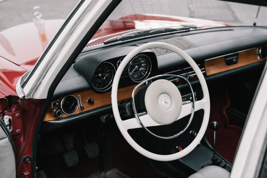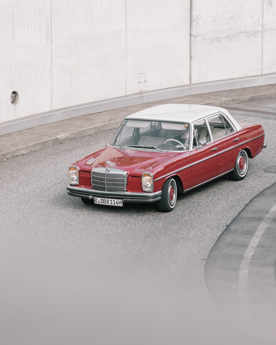 The interest in classic Mercedes’ came after I bought my first Benz and drove it for the first time. It was exactly that red and white W114 that started my Mercedes Benz collection.