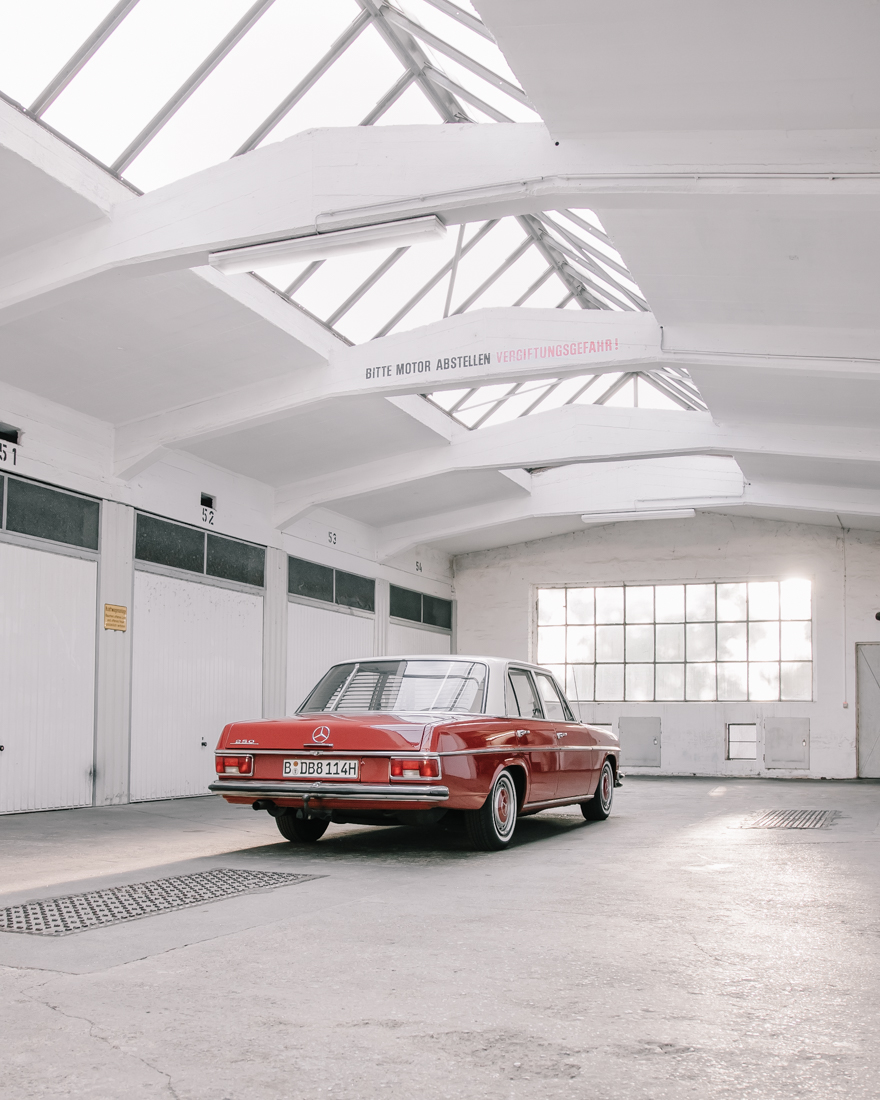 One day I saw a story on Instagram that he was with his car in my neighborhood. I immediately invited him for a coffee and a few days later I went to visit him in his garage. The place itself has an impressive story: it was an East German Police garage. There, he was working on his fire truck. I got to see his workshop, part of his Mercedes collection and of course his favorite 250 which was the protagonist of this interview.