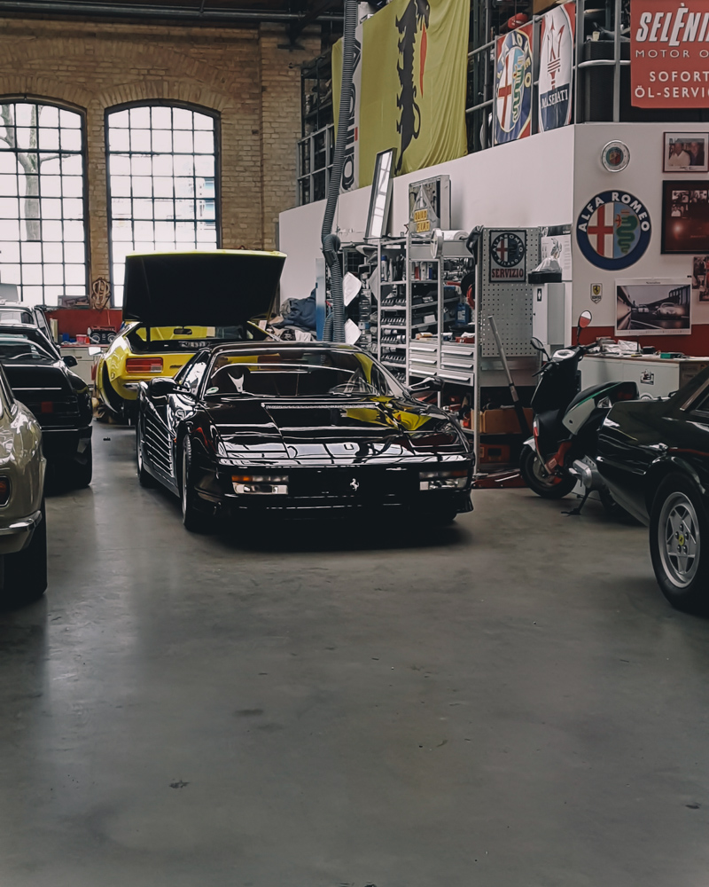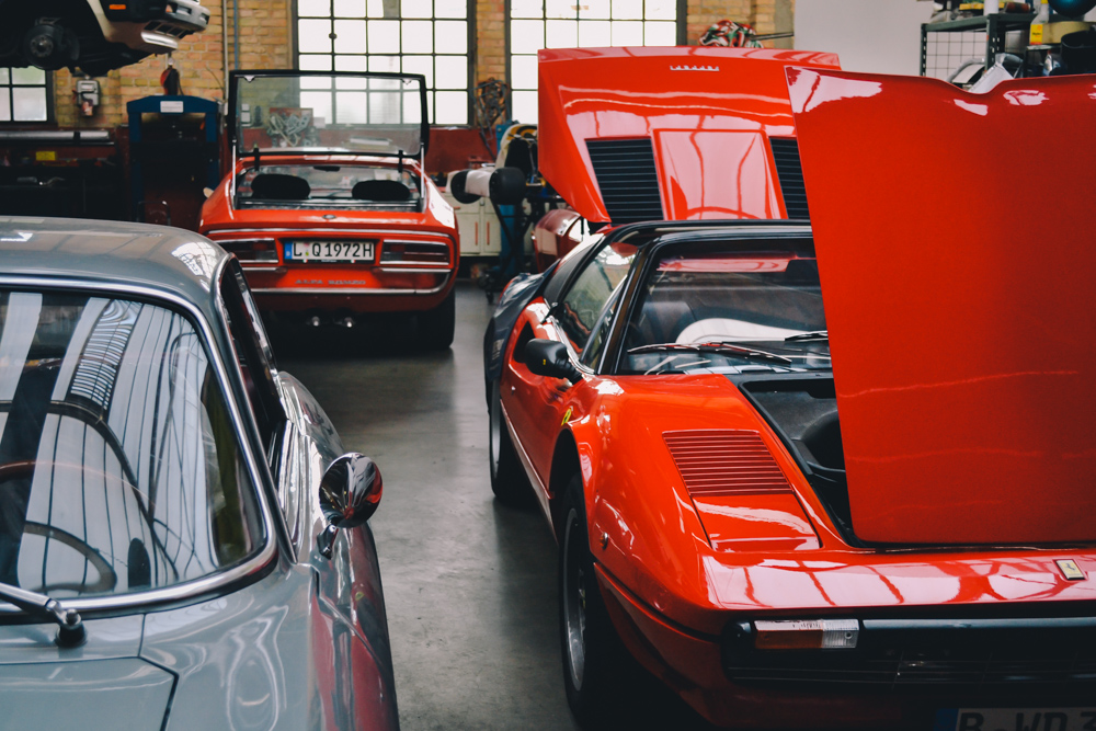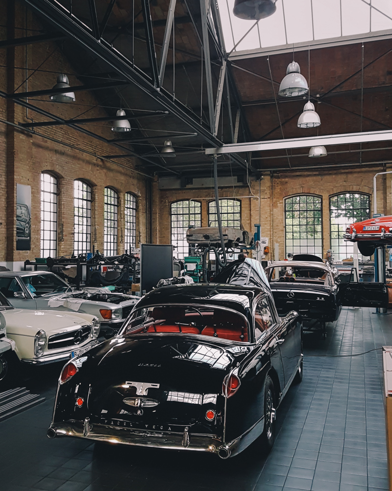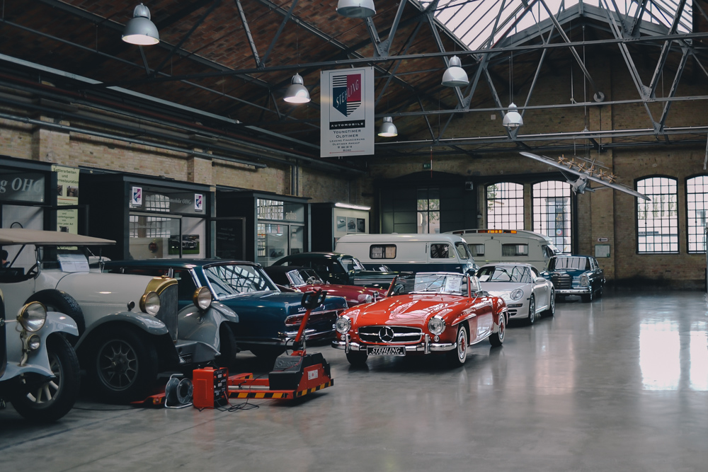 Nowadays, Classic Remise is home to garages, oldtimer dealers and a vast, outstanding collection of classic cars. One of the best parts is the central hall with more than 80 special cases made of glass, including climate-control that preserves notable cars in perfect condition, such as Mercedes Benz 300SL, BMW M1, Ferrari 308 Quattrovolve, Lamborghini Countach and Lotus Esprit.