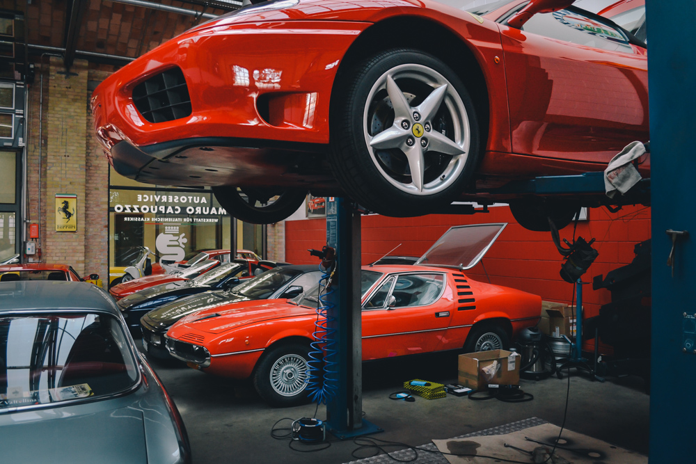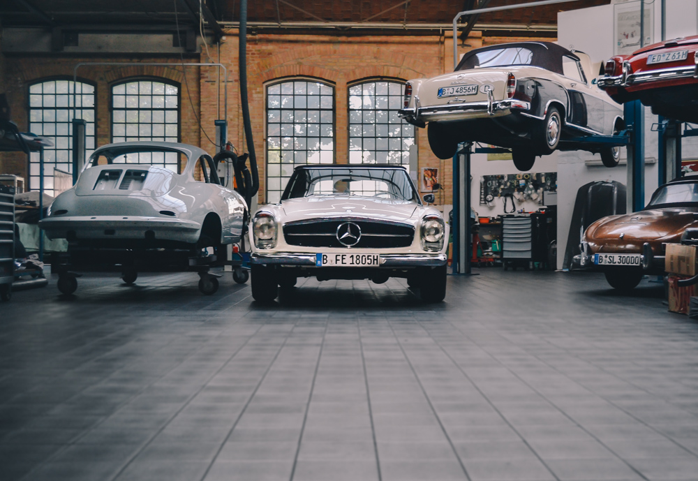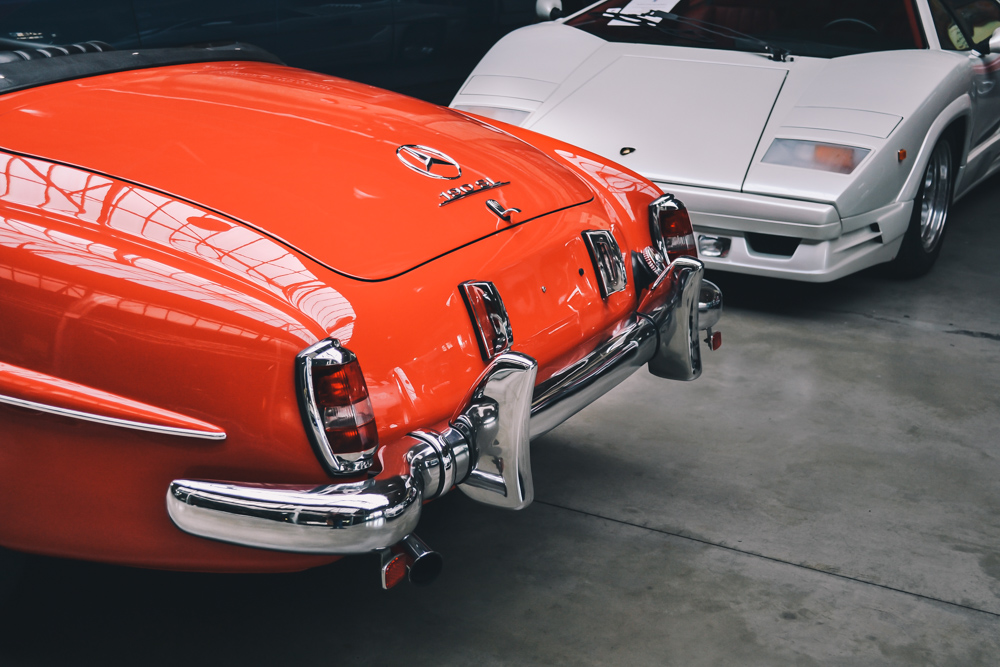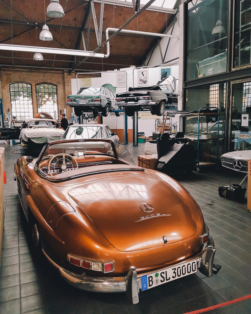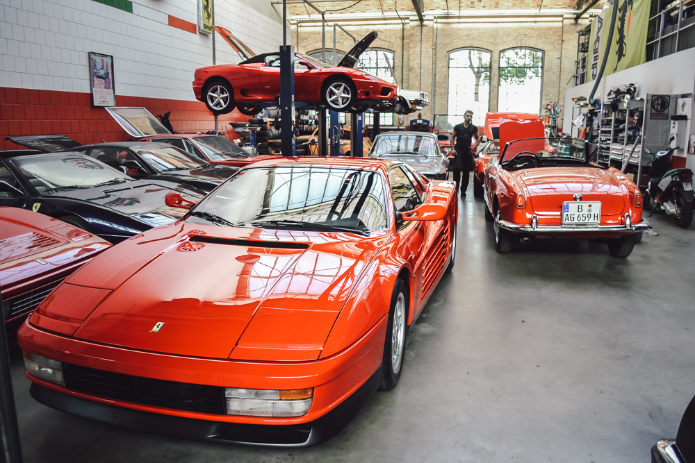 Nowadays, Classic Remise is home to garages, oldtimer dealers and a vast, outstanding collection of classic cars. One of the best parts is the central hall with more than 80 special cases made of glass, including climate-control that preserves notable cars in perfect condition, such as Mercedes Benz 300SL, BMW M1, Ferrari 308 Quattrovolve, Lamborghini Countach and Lotus Esprit.