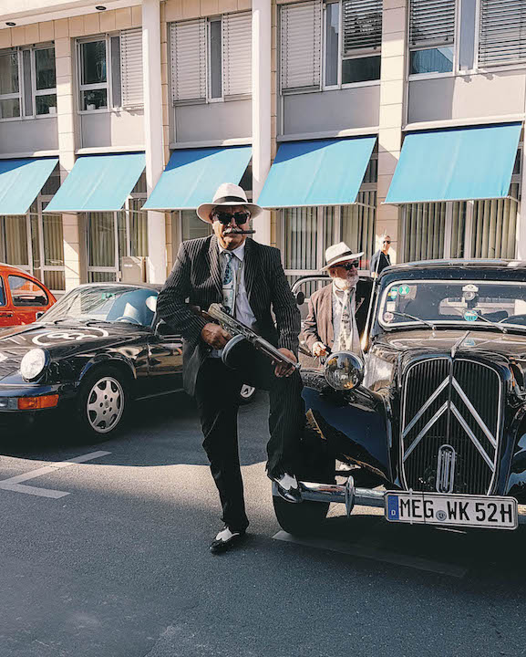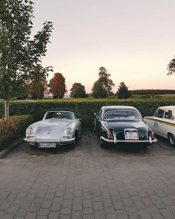 The rally led us through very beautiful towns and cities with very cool sites, like Lärtz, Plau am See, Ulrichshusen, Fleessensee, Moltzow and Potsdam. They stopped to get some food and drinks and this was the perfect moment to capture with my camera all the cars arriving in these places; the most beautiful of the latter were an old train station and the Lärks airport with a yellow airplane moving synchronized with the cars in a spectacular “choreography”. Also in the rally, I took photos of some beautiful oldtimers, like Mercedes Benz 300SL, 280 SL Pagoda, Maserati Indi, Porsche 911, 356, Toyota 2000GT, Bmw 507, 2800 and a very pretty 2002 GT4 designed by Frua. Some of the owners wore really cool outfits matching the cars like the ones in the Ferrari 308 GTSi and the Citroën 11b.