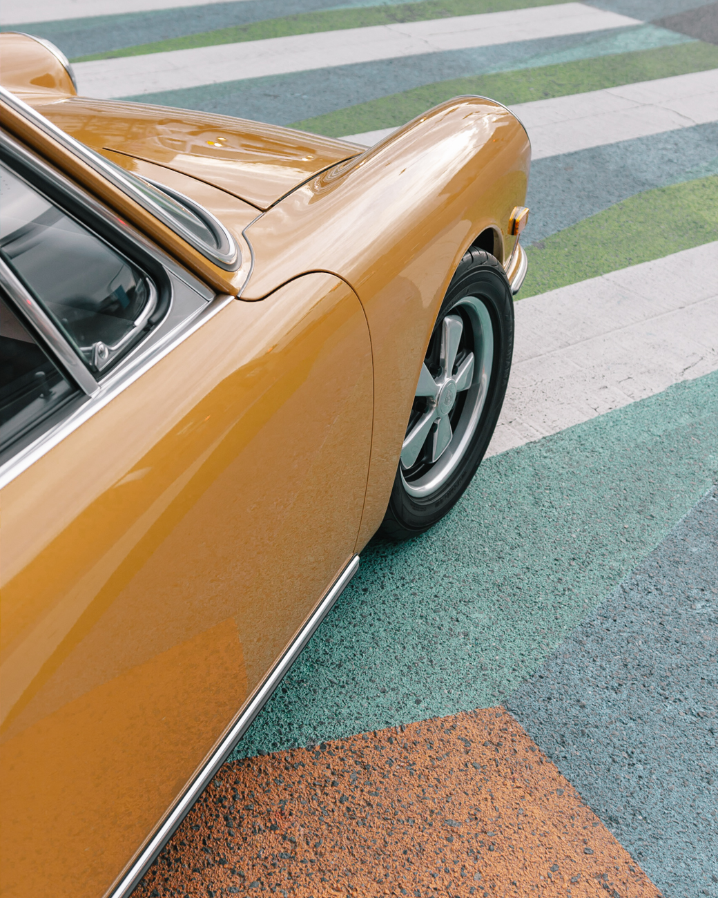 Porsche 912 passing by the Carlos Cruz Diez artwork