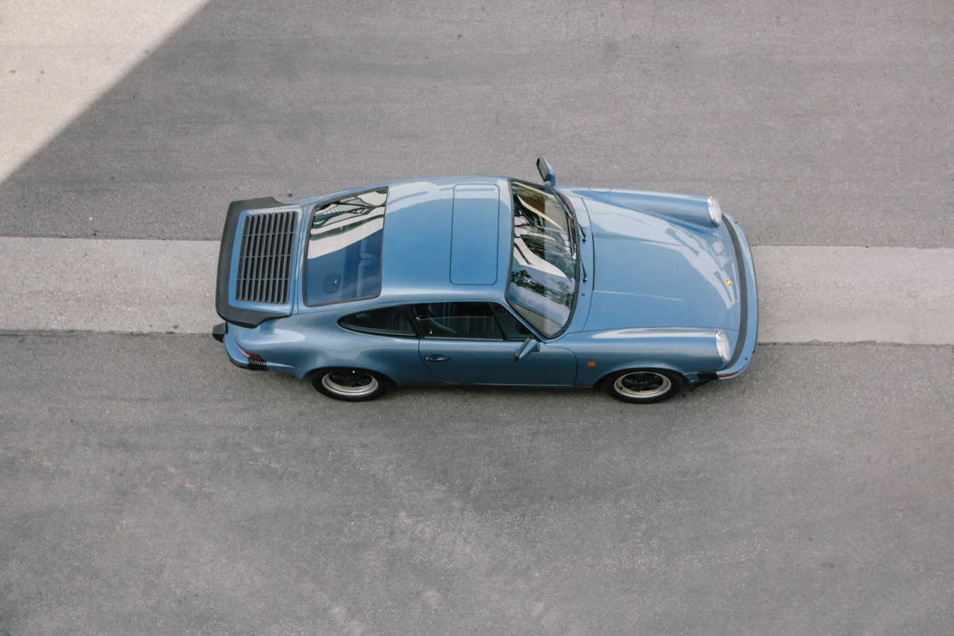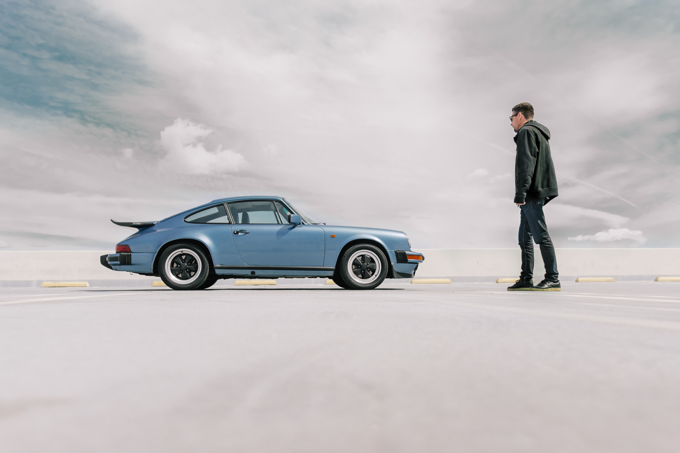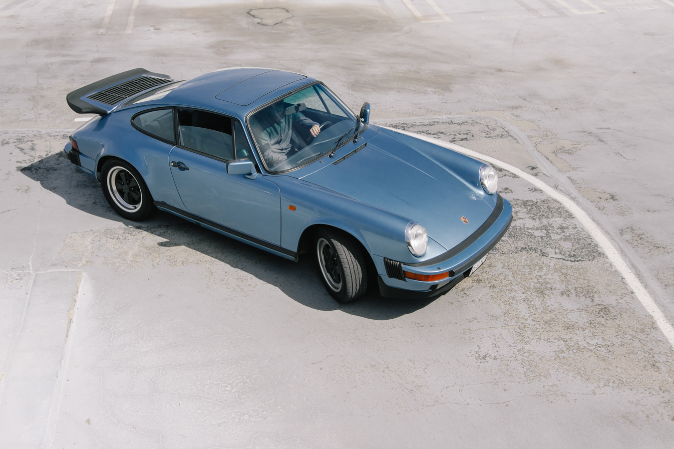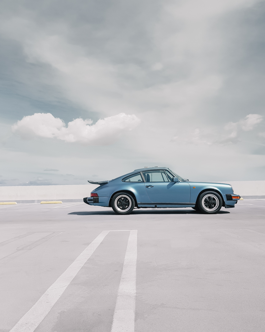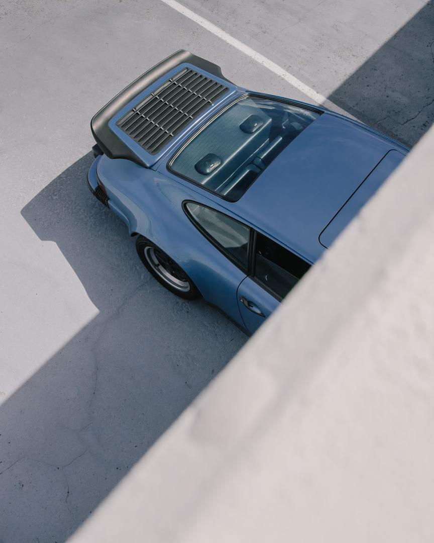 Some time ago during my time in LA, in one of those typical Sunday “Cars and coffee”, I recognized the license plate of a beautiful Irish blue 911. It always caught my eye when I saw it on Sheldon’s Instagram. I approached him, to tell him how much I liked his car and if I could photograph him maybe in another context like more Californian vibes. That day also, he introduced me to his friends, with whom we did a road trip to the Angeles National Forest a few days later with some nice Porsches. The color of this car is also something I love, especially in the California light that is so special, it makes the car look even more minimal. So I decided to take pictures in very common places in Manhattan Beach but as minimalist as possible. Here are some questions I asked Sheldon about his 911: