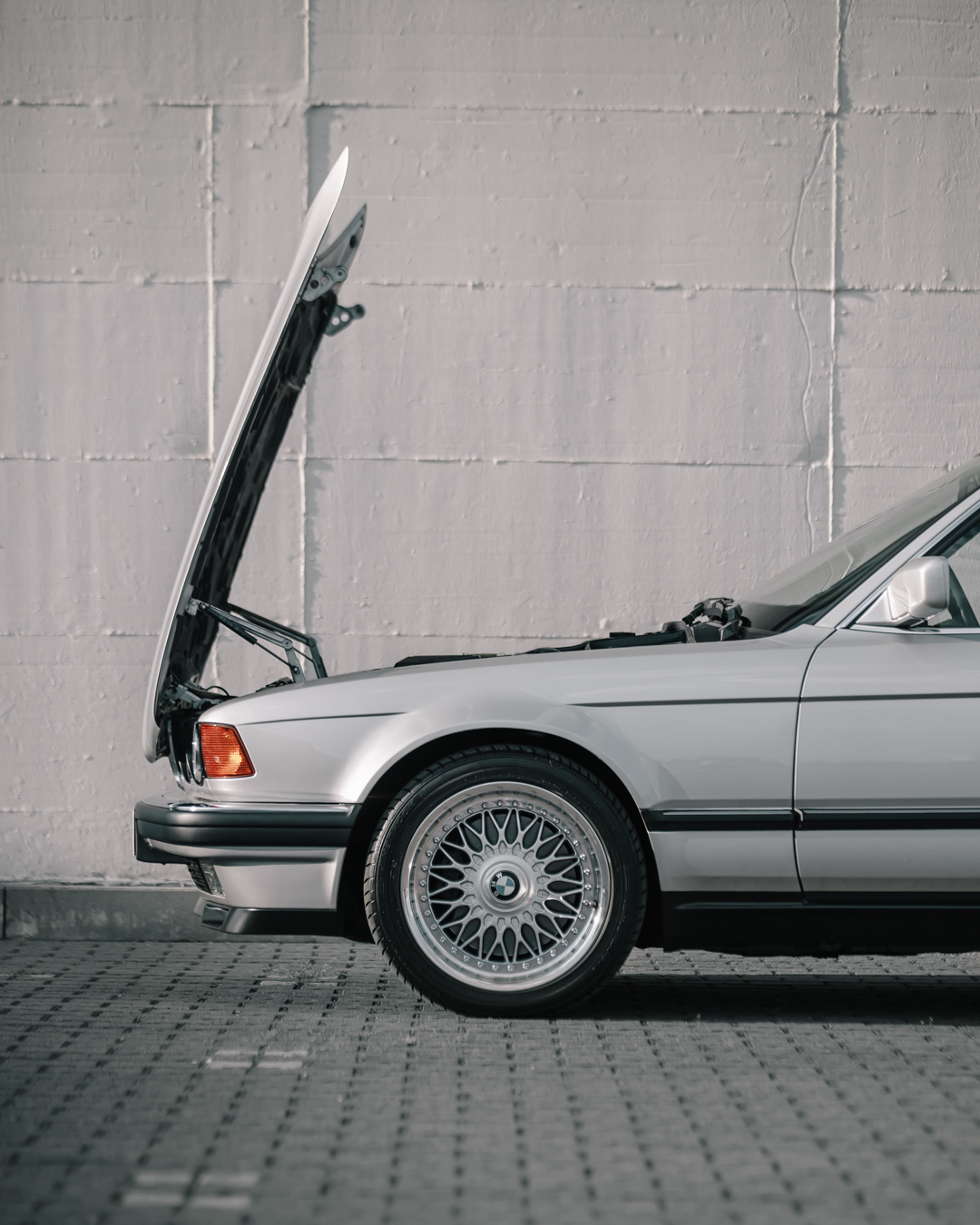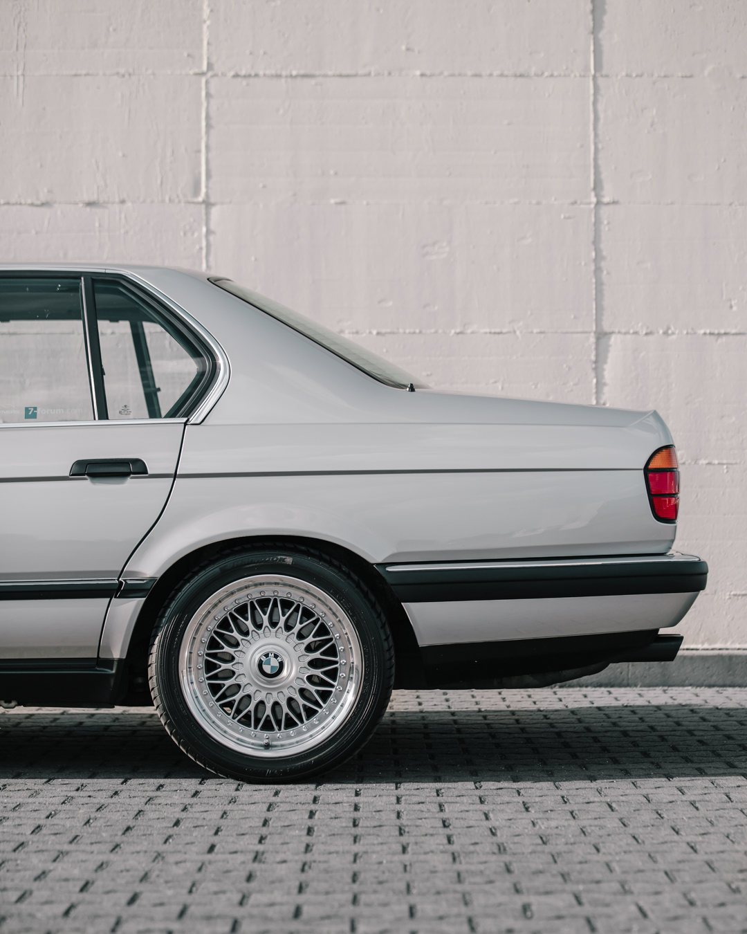 I spent nearly three years to find exactly these wheels for my car. They were a factory option by BMW, but not many buyers ordered them so they are quite rare in the size needed for the E32. When I finally found a set, they were in a really bad condition and needed a total rework. They were split, repainted, polished, and fitted with new chrome-plated bolts. The Styling 5 is a great wheel, fitting any BMW from 1980-1995.