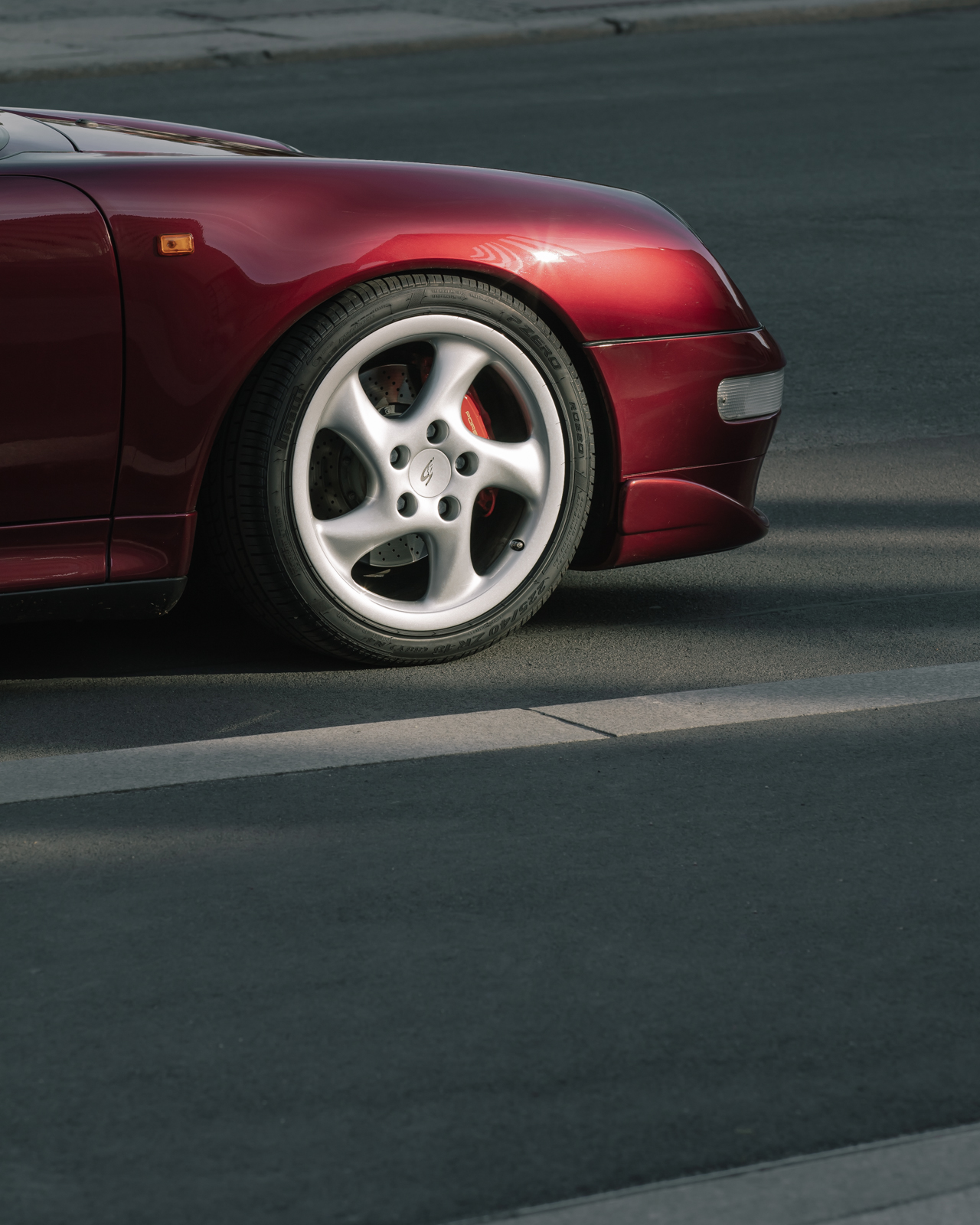 It´s more than a detail but the most striking design element of the 993 4S is the wide rear end, which it shares with the 993 Turbo, but without the turbo wing. One of the more unique features of my particular car is the RS front spoiler, which was added by the first owner to provide more downforce and stability on the front axle, which otherwise might become a bit shaky on the 993. This feature, in combination with the also rather rare absence of a sunroof, gives my car some nice gentleman racer vibes, which I like a lot.
