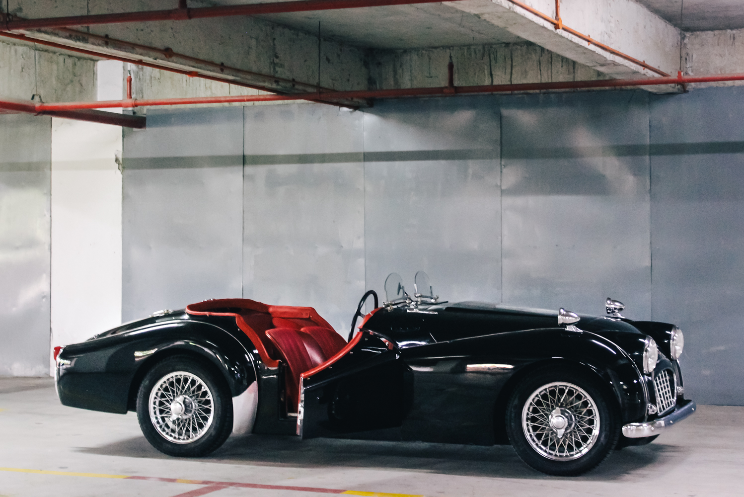 The second storage car that I decided to photograph was a very beautiful Triumph TR3, black with red intense interior a Triumph TR3, actually manufactured in 1957, coincidentally also the Malaysia’s year of independence! They call independence ‘Merdeka’ in their native language Malay, hence they also nickname the Triumph ‘Merdeka’.